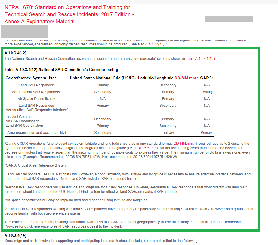 The USNG related directives found below are for cartographers, SAR instructors and other detailed orientated individuals who wish to have in depth understanding of U.S. National Grid implementation standards.